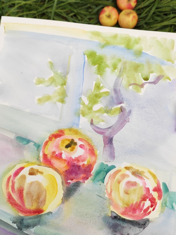 В деревне рисовала яблоки 🍎 — сочные, яркие, смотрящие в окно, ожидая окончания дождя. Этот день подарил ощущение вечности, которое хочется передать через краски и эмоции. 💫