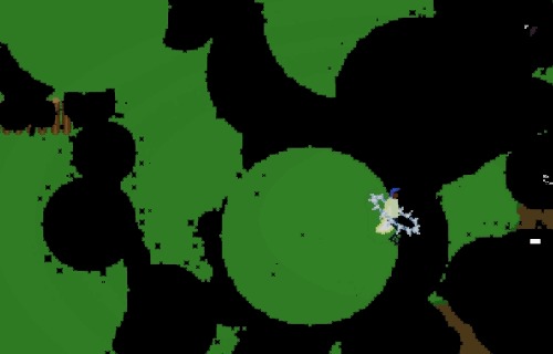 Механики готовы, пора рисовать и графику. Но какой стиль выбрать? 2D или же 3D? Смотрю на получившуюся тьму и понимаю, что она выглядит довольно пиксельно. Чтобы сгладить ее, придется либо карту уменьшать, либо разрешение текстуры увеличить вдвое. Вариант с несколькими текстурами отбросил, потому что лень их стыковать. Ну раз пиксельно, то пусть и все остальное тоже будет таким. Хоть и есть личности, которых воротит от этого.