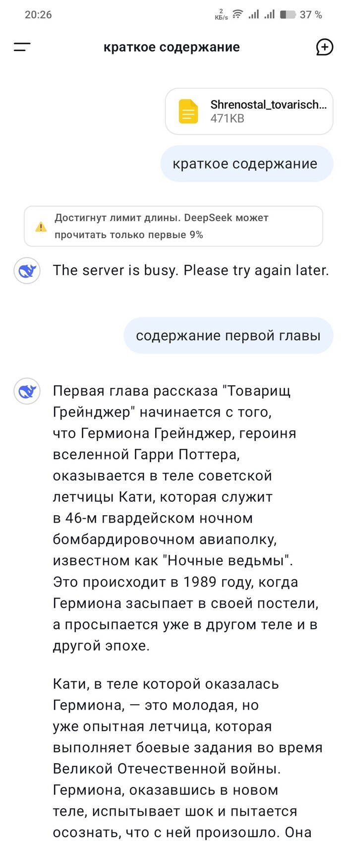 Гермиона пытается разобраться в ситуации, но ее мысли прерываются воспоминаниями Кати о войне, о боевых вылетах и о том, как она сражалась с фашистами. Гермиона понимает, что она должна адаптироваться к новой реальности и, возможно, использовать свои знания и навыки, чтобы выжить в этом мире.