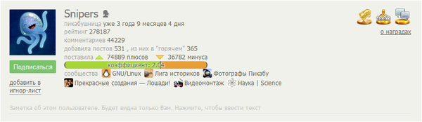 Кто-то может найти интересным коэффициент плюсов/минусов в профилях пользователей. И полоска соотношения плюсов к минусам, помогающая понять на сколько добрый или злой пользователь перед вами.