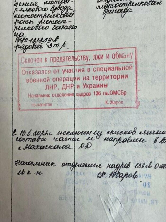 Классная метка в послужной карте у российского контрактника, отказавшегося воевать.