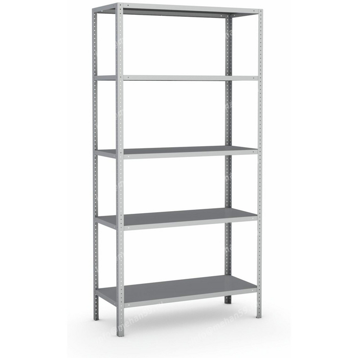 Так как ящиков много, то лучше всего их хранить вертикально. Для этого я купил металлические быстросборные стеллажи высотой 200 см, длиной 100 см и глубиной/шириной 40 см, 5 полок.