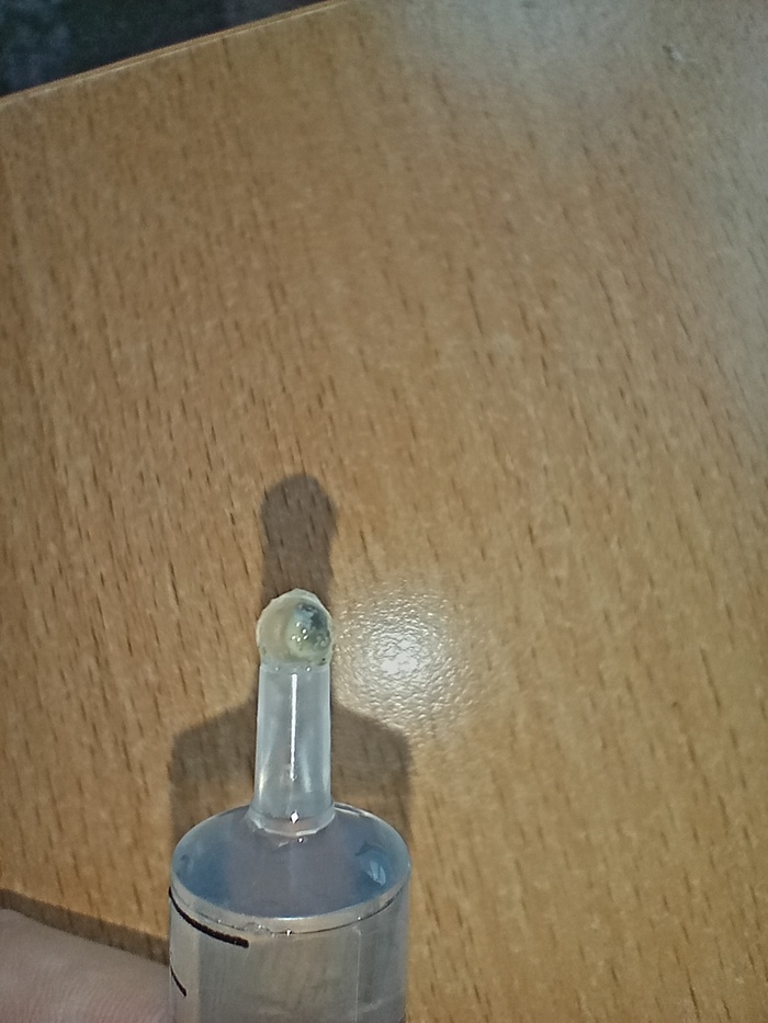 Сразу видно, что даже пластик на шприце прозрачнее икринки. И цвет какой-то с зеленцой.