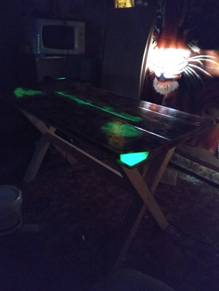 рукоять из стабилизированной еловой шишки,залитой эпоксидным составом и люминофором