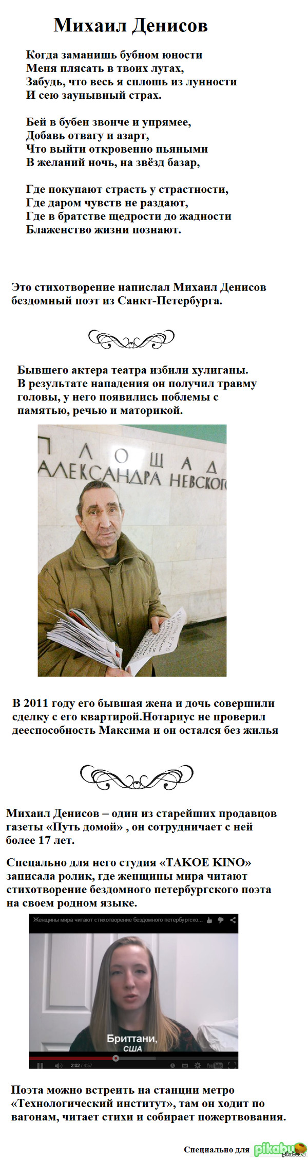 8 AstaRoth Петербургский сумасшедший 10 лет назад История одного хорошего человека Показать полностью 1 [моё] Поэт Михаил Денисов Стихи История Длиннопост