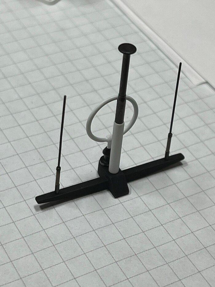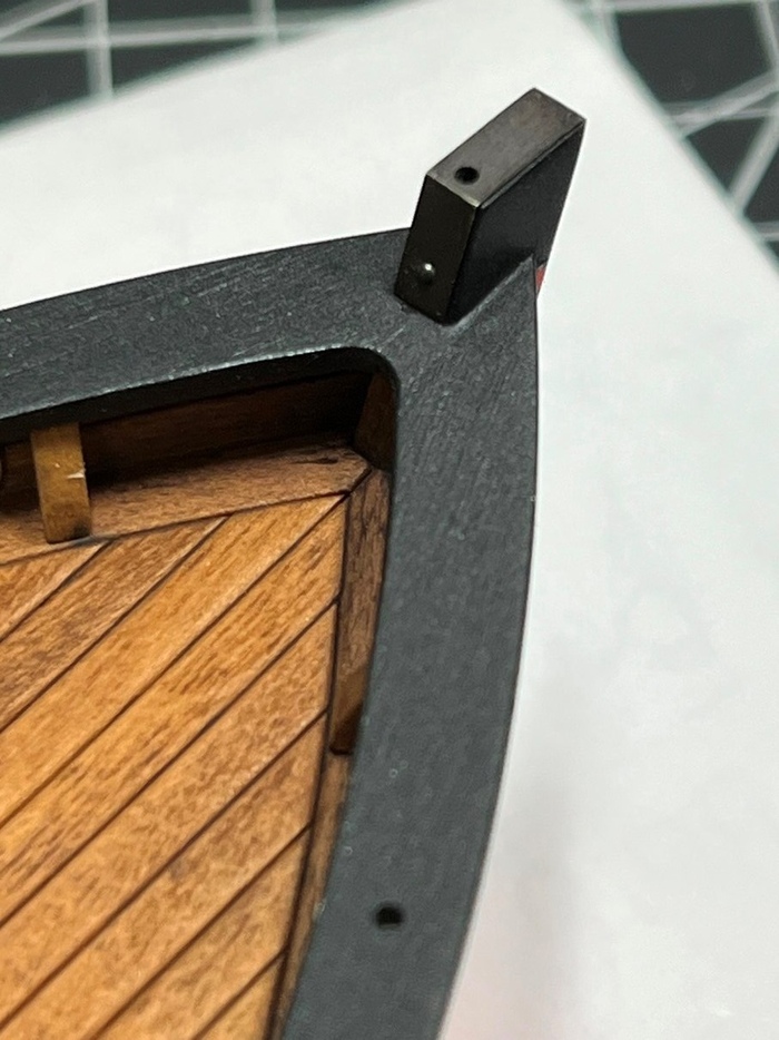 Переделал кнехты, нужной толщины латуни не нашел, пришлось распилить латунную шестеренку от будильника, трубки от латунного стержня ручки, пайка + чернение