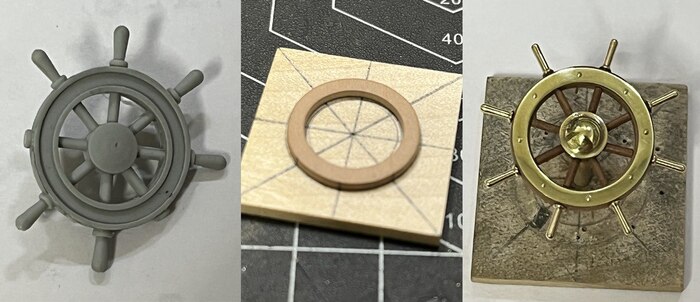 Штурвал, заводской при доставке немного пострадал, сделал другой из груши и латуни