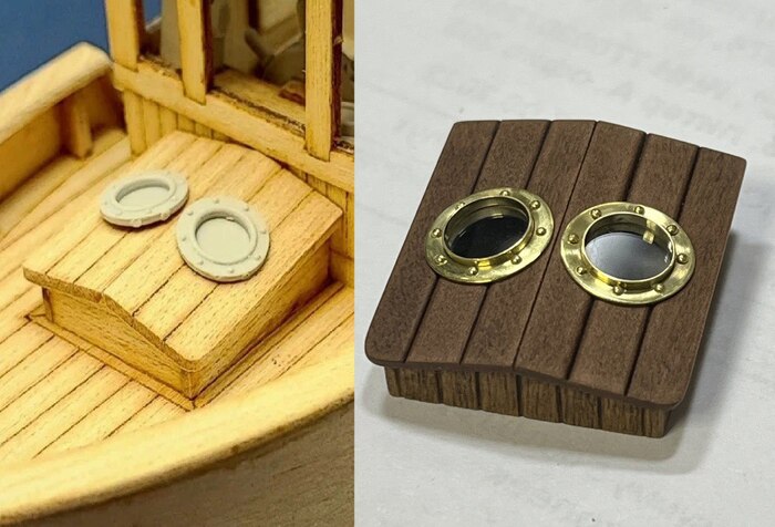 Переделал пластиковые иллюминаторы на паяные из латуни, «стекло» - защитная пленка от телефона
