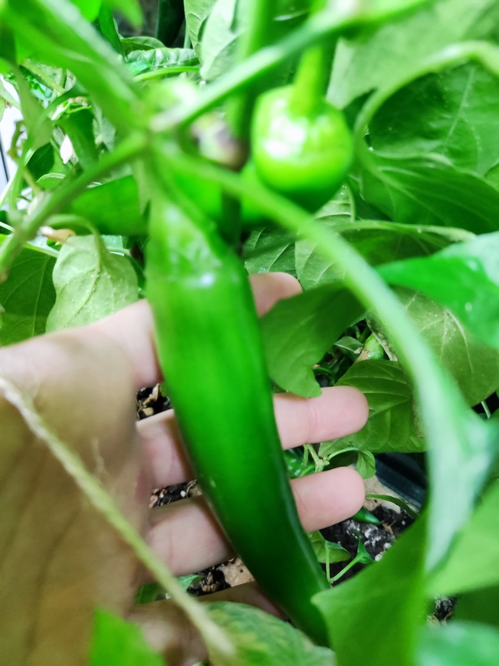 Что бы вы понимали, высотой он уже больше метра. Длинные ветви с обилием цветков. Я опылял некоторые и уже перчиков 20 растёт. Многие уже офигеть какие здоровые.