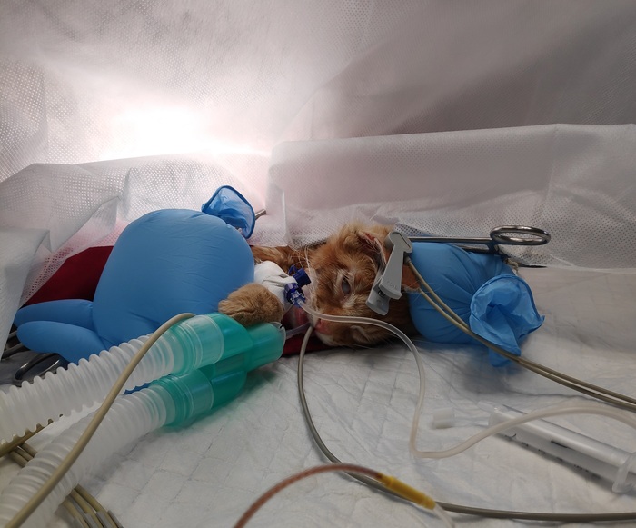 - Подключение к наркозно-дыхательному аппарату для подачи газа, на котором животное будет сладко спать и смотреть мультики и для того чтобы если оно вдруг не сможет нормально дышать - подышать за него на время операции.