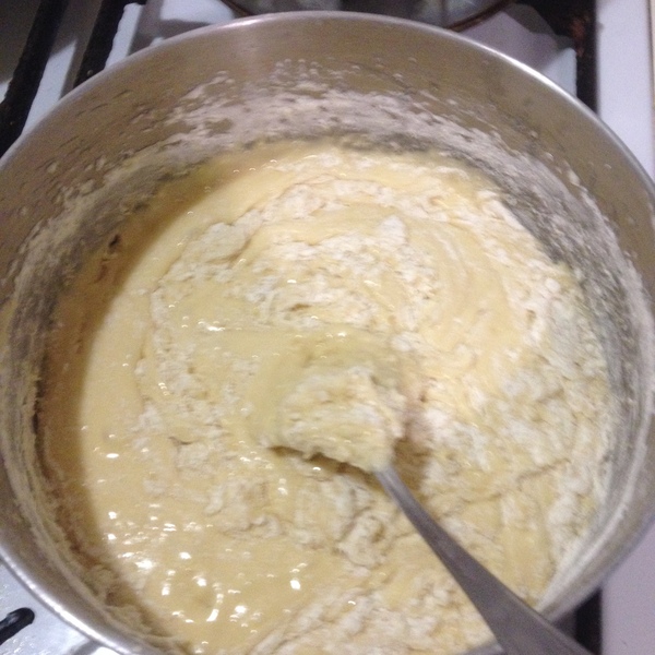 Масса должна получиться не жидкой ,но и не густой, будет прилипать, но мы должны добиться средней консистенции ( не сметана, но и не единый ком))