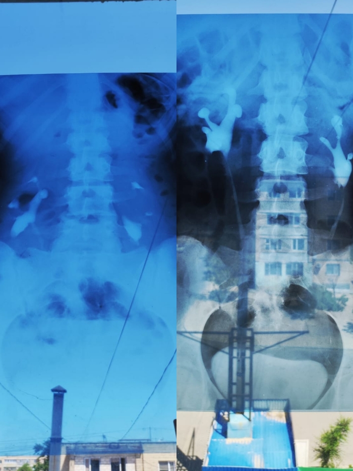 Снимки экскреторной урографии стоя и лежа: видно, насколько опускаются почки при смене положения (фотки на окне, иначе как подсветить рентген))