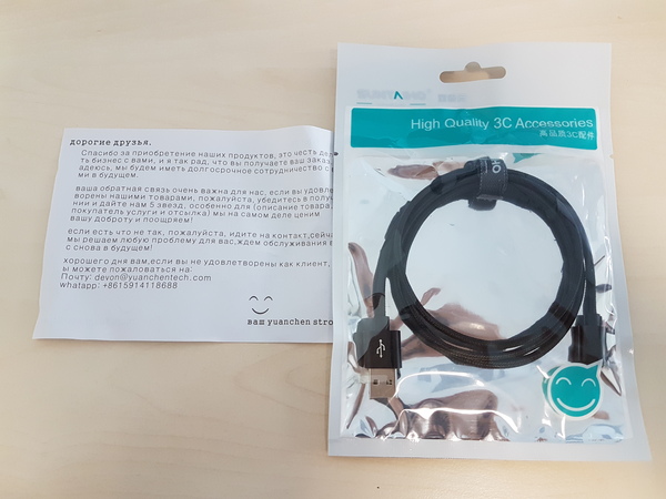 Забавная тема ждала меня в пакете с кабелем, бумажка, как кладут китайцы с али "поставь мне 5 звезд, русский брат", зачем оно там?