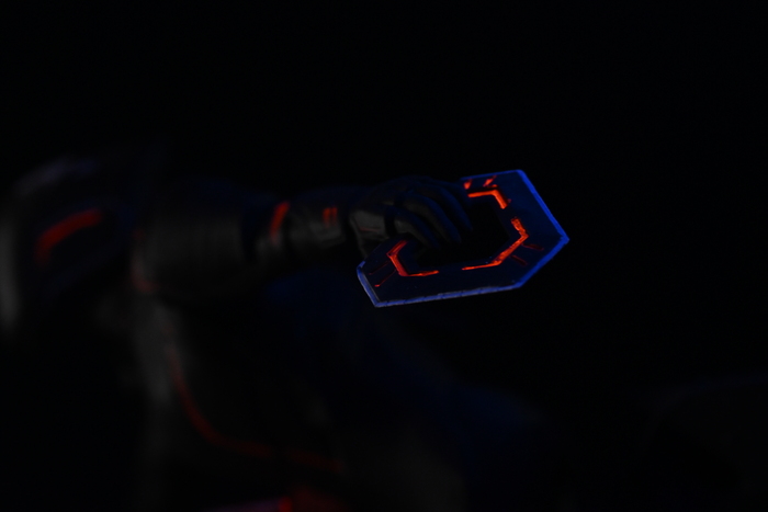 Неоновые линии рисовал люминесцентной краской, которая, как оказалось, ложится с трёх слоёв и более, а еще требует ювелирной точности. Зато эффект свечения получился шикарный — и без всяких диодов.
