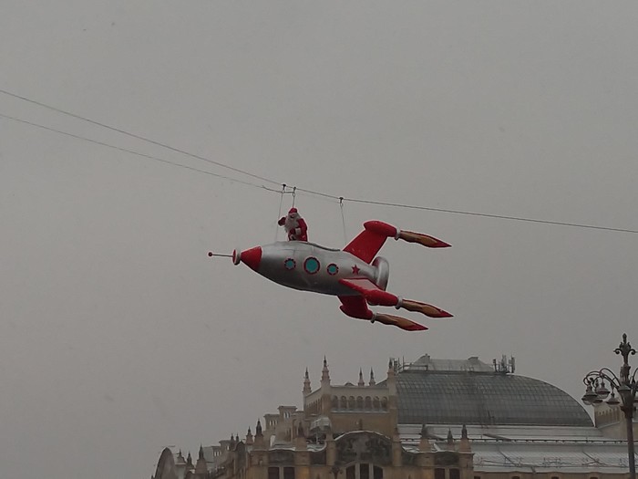Гуляли вчера 04.01.2020 по Москве и увидели этого будолагу. Почему бедолага? Просто температура +1 - +2, мокрый снег с ветром, а этот человек радостно привет машет толпе у большого театра. Дело было в +-14.00