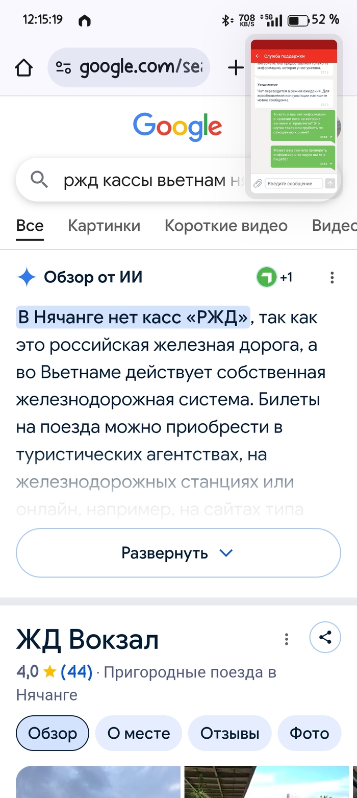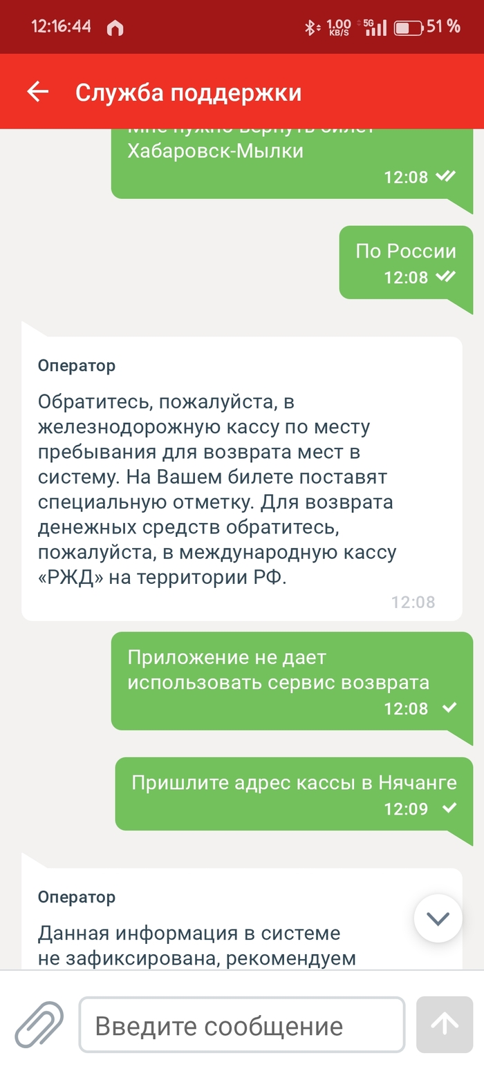 Хотел вернуть электронный билет на поезд, купленный через приложение, находясь на отдыхе во Вьетнаме, а рзд мне очень (нет) помогли.