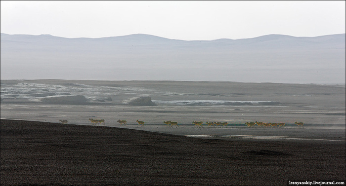 Верблюды, кианги и антилопы дзерены. Травы в пустыне практически нет.