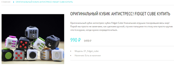 Невероятный антистресс-аксессуар, позволяющий занять вам руки, пока вам нечего делать. А самое главное, только сегодня в нашем телемагазине вы можете приобрести его по цене 990 рублей, тогда как обычная цена куба составляет 1490 рублей! Щедрое предложение, не так ли?