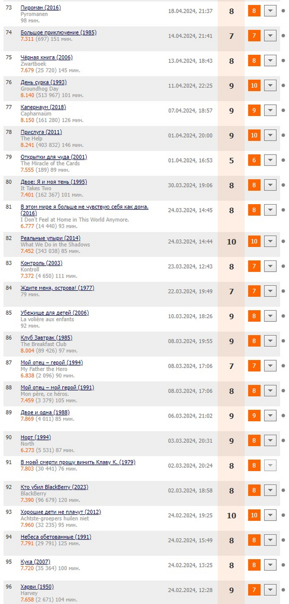 Новая подборка фильмов - как результат рандомного списка. Некоторые буду пропускать - их друг посмотрел раньше, просто вспомнил и поставил оценку.
