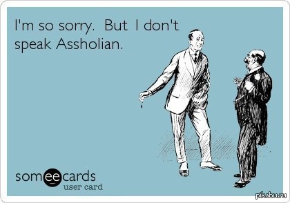 95 AvroraS На случай важных переговоров 12 лет назад Вольный перевод: "Простите. Но я не говорю на языке придурков." Открытка Язык На случай важных переговоров