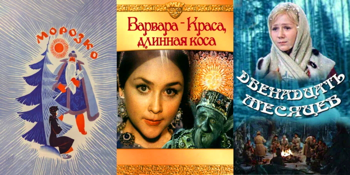 4) Цветной музыкальный фильм-сказка «Морозко» снят на Центральной киностудии детских и юношеских фильмов им. М. Горького в 1964 году по мотивам одноимённой русской народной сказки. 5) Полнометражный цветной фильм-сказка «Варвара-краса, длинная коса», снят на Центральной киностудии детских и юношеских фильмов им. М. Горького в 1969 году по мотивам русской народной сказки «Морской царь и Василиса Премудрая» и сказки Василия Жуковского «Сказка о царе Берендее». 6) Двухсерийный фильм-сказка «Двенадцать месяцев» снят на киностудии «Ленфильм» в 1972 году по одноимённой пьесе Самуила Маршака.