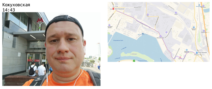 Я дошёл, на фото возле Шипиловской, это не улыбка, то подобие улыбки (скрывающий боль Гарольд). Домой ехал на метро, воды хватило впритык, пару глотков на путь от метро до дома.