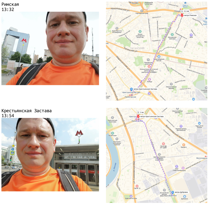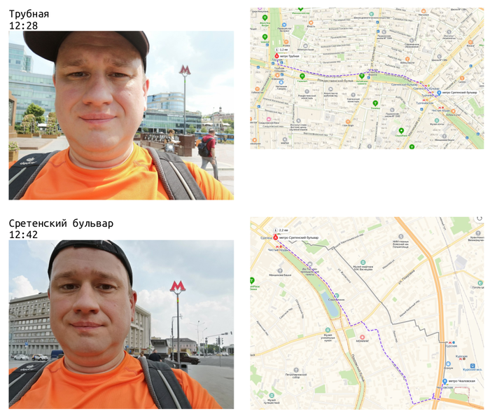 Мое путешествие началось в 9:17, фотографировался у каждой станции метро отправлял в WhatsApp фотку и местоположение на карте
