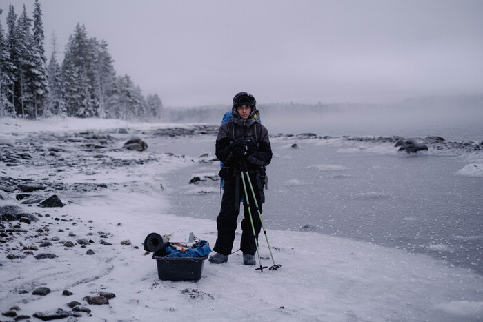 Самая сложная часть похода - идти 8-10 км на снегоступах и тащить за собой волокуши с вещами. Уже через пару минут ходьбы становилось невыносимо жарко и мы снимали с себя все теплые вещи стараясь хоть как-то наладить терморегуляцию.