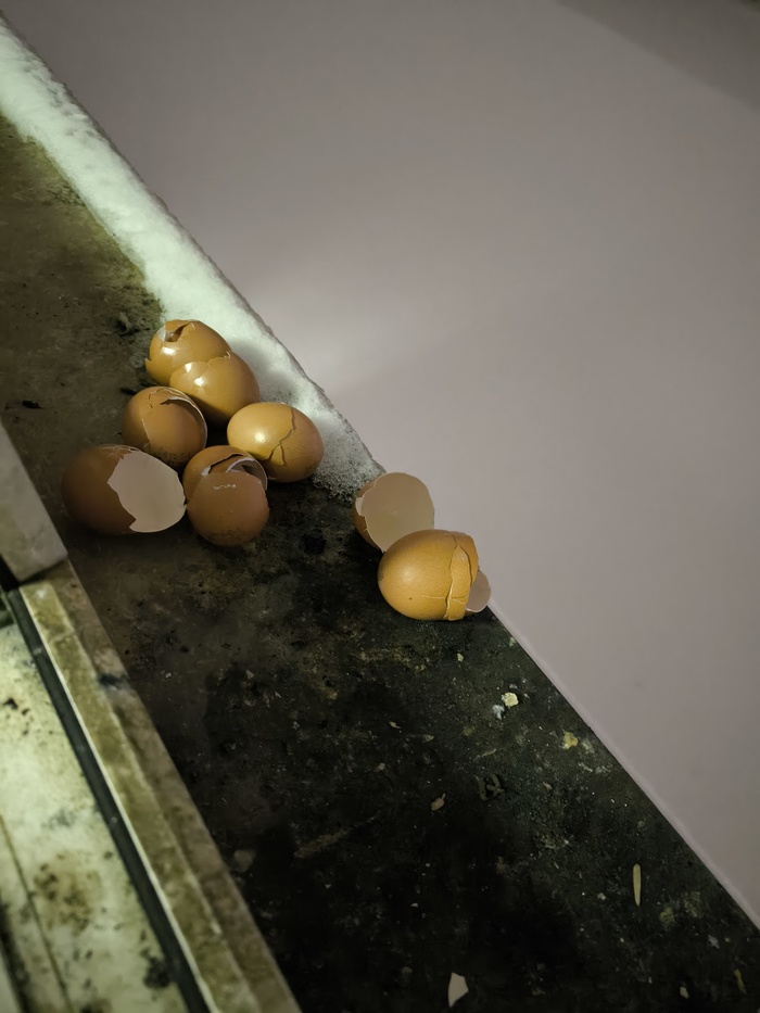 В этом углу алтарь для подношений тёмным богам. Половинка хурмы их устраивает, судя по копошению в углу. Пришлось попросить их прервать трапезу струёй "Раптора", они вернулись минут через пять.