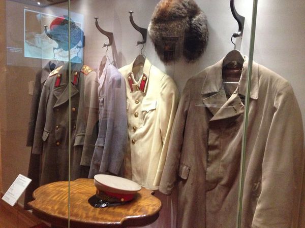 На фото: одежда Сталина. На первом плане штопаный плащ.