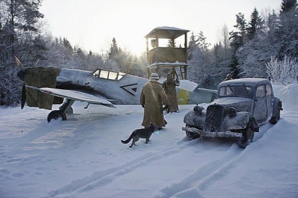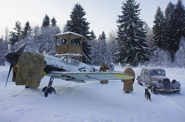 Готовлюсь к работе над новой диорамой и делаю небольшой перерыв в своей ж.д. тематике. На этот раз хочу заняться авиационной темой и опять в крупном 1/32 масштабе. Сюжет не очень замысловатый. Зима. (возможно у многих это и вызовет улыбку, но для удачной фотосессии я теперь делаю зимой-зимние диорамы, а летом - летние). На занесенном снегом летном поле стоит самолет (истребитель Люфтваффе, рядом с ним караульная вышка и два часовых от Мастер Бокс).