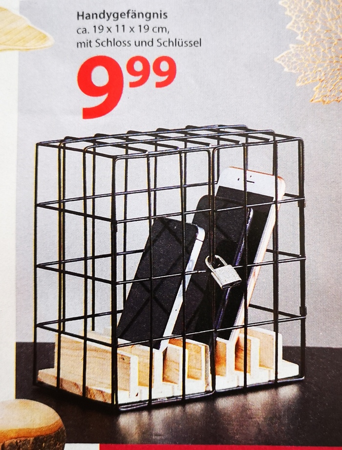 Пришла такая вот реклама. Всякие декоративные безделушки и одна полезная для всей семьи: тюрьма для телефонов всей семьи.
