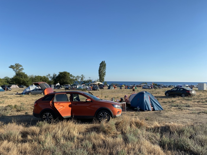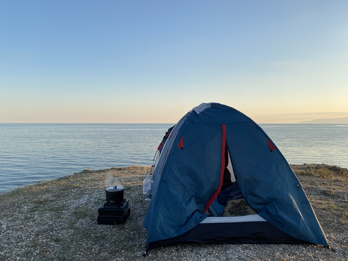 Наш путь лежал вдоль всего побережья, от Феодосии до мыса Тарханкут. Чтобы максимально насладиться природой и найти единение с ней решили жить в палатке прям у моря. Скажу сразу, найти уединенное место нынче было проблематично. На так называемой первой линии народ стоял почти друг на друге. Но это в кемпинге. На диких пляжах попроще. В отличие от основных городов (Ялта, Алушта), занимать места с утра не было необходимости)