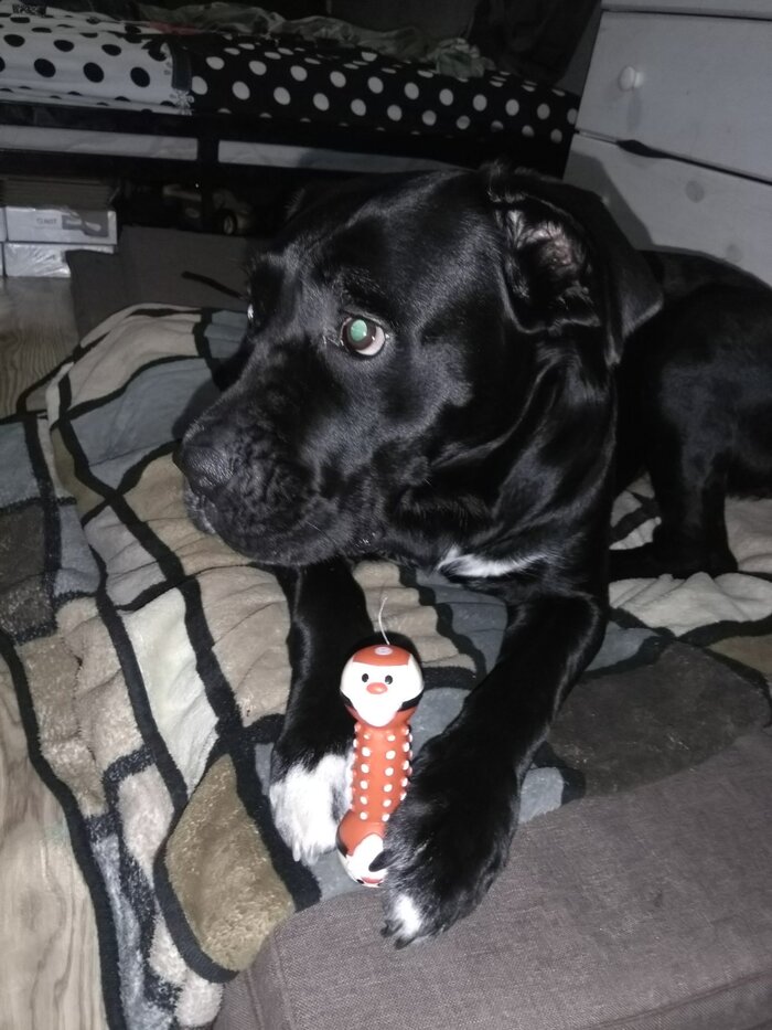 Пищалка для пёселя также сразу пошла в ход. К ним у нее особая слабость.