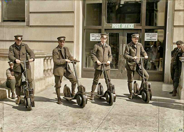 Сотрудники почтового отделения демонстрируют свои новенькие скутеры «Autoped», Вашингтон, 1917 год.