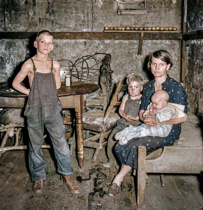 Жена шахтера и трое детей, Западная Вирджиния, сентябрь 1938 года.