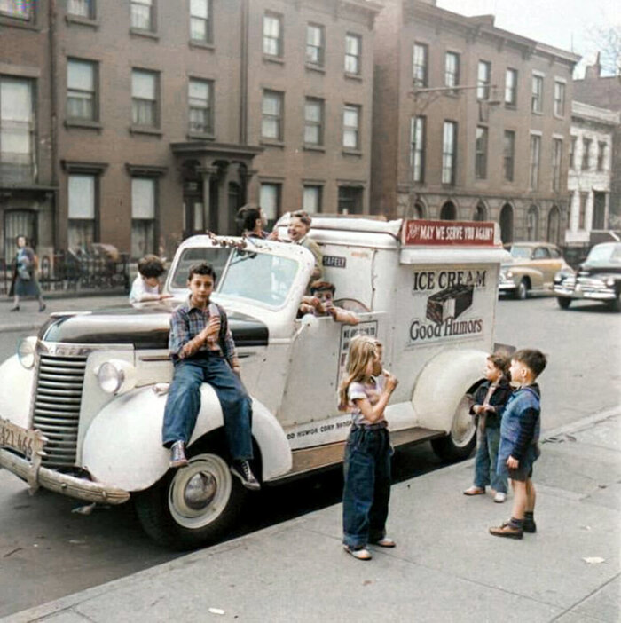 Первые фургоны продающие мороженое появились еще в начале ХХ века, когда у большинства семей не было морозильной камеры дома.