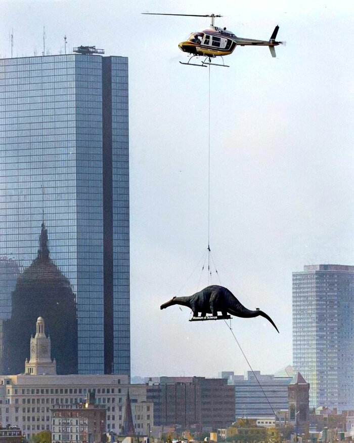 Доставка динозавра для выставки в Бостонском музее науки, 1984 год.