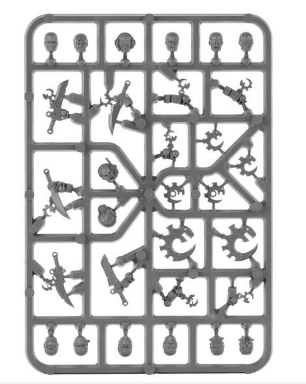 А знаете что обидно? Что в плане конверсии они малопригодны. Вот под кого их ещё можно собрать кроме как под генокульт? Ни у кого нет подобных юнитов. Ну, разве что оружие внутри интересное (я обязательно найду способ присобачить такую циркулярку своим космодесантникам Хаоса). Зато для генокульта это не минус, ведь для них набор – это отличный набор битсов (голов там просто какое-то сумасшедшее количество) и потрясный юнит в коллекцию.