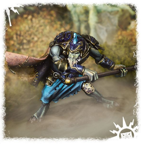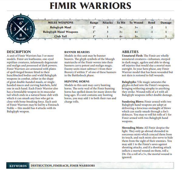 Кто такой Fimirach Noble? Это вожак Фимиров. Кто такие Фимиры? Фимиры – отвратительные одноглазые рептилии, обладающие тёмными силами. Собственно это всё, что про их бэк во вселенной Age of Sigmar можно рассказать. Зато правила (как и на любую миньку для АоСа) уже есть.