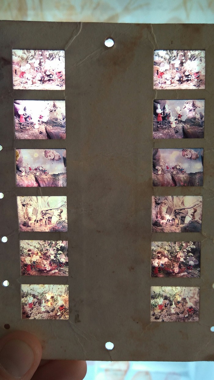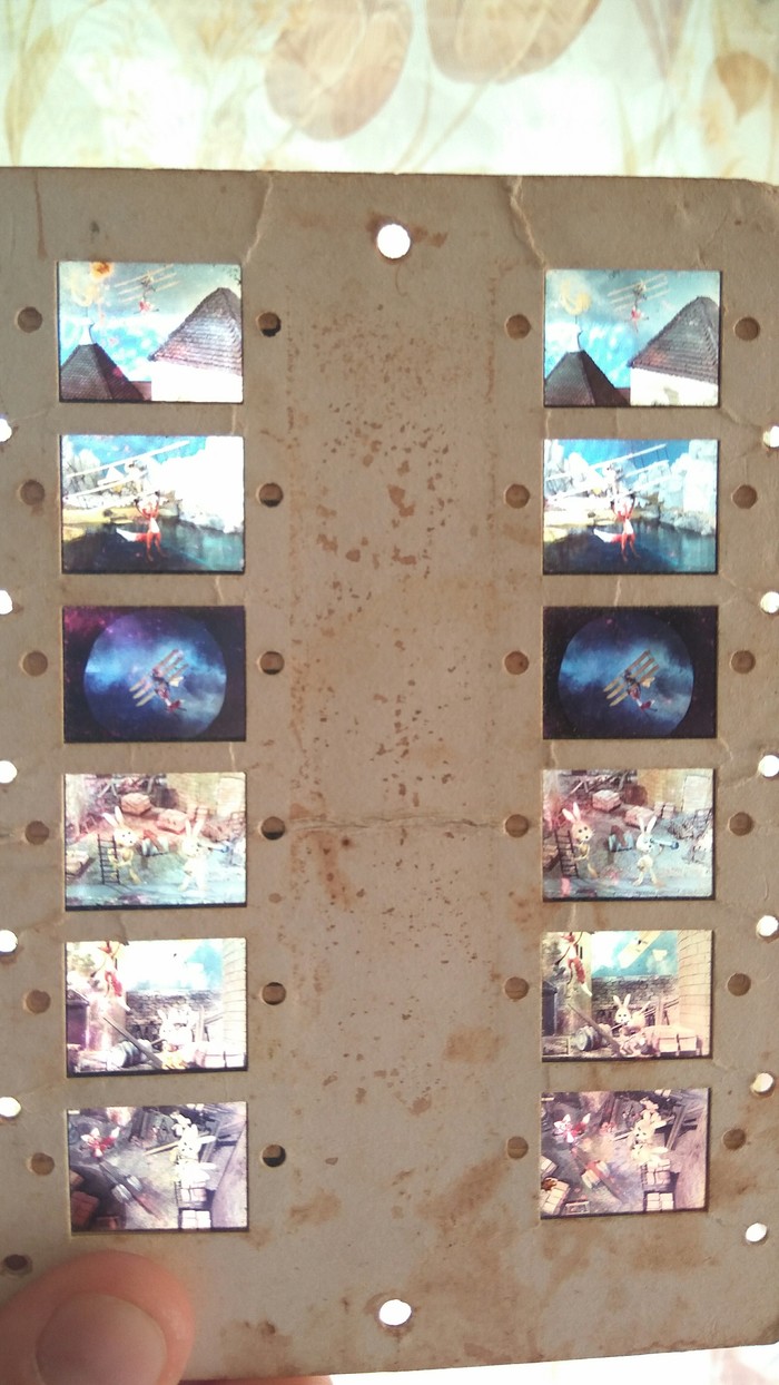 Когда-то в комплекте со стереоскопом была увесистая пачка слайдов, сейчас нашел только два. На слайдах были изображены сюжеты из различных сказок. Помню, что подолгу мог рассматривать в детстве эти картинки, настолько они меня впечатляли своей детализацией и реалистичностью, и конечно же 3D эффектом.
