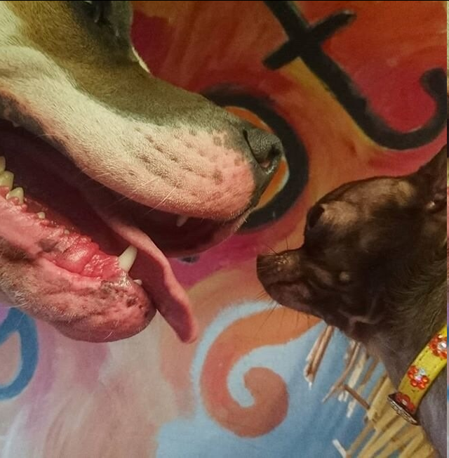 И когда к двухлетнему стаффу в дом принесли котенка Эя, которого нашли тонущим в шине с дождевой водой, Кай очень истерично требовал предъявить ему новичка.