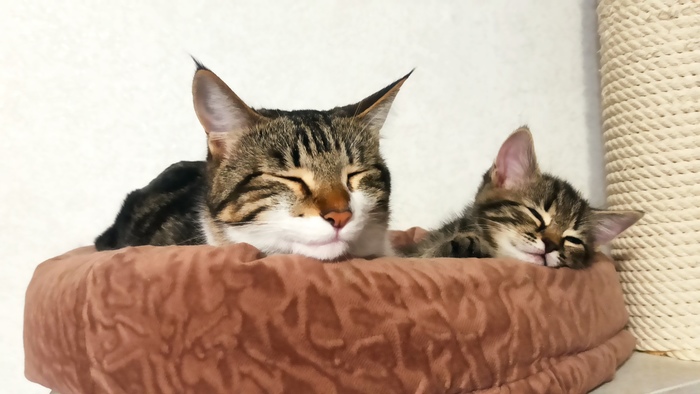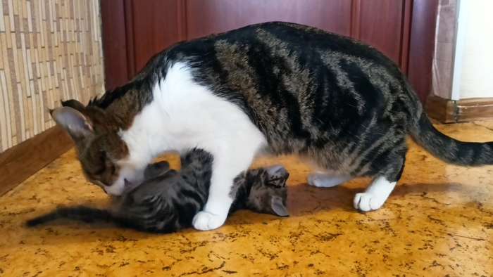 Старшие конечно знатно прифигели, особенно Кося, он озверина видимо принял😆 Но через день они передумали и все наладилось. Кося вообще стал ему матерью, грел, подмывал (напомню, ребенок писать никак еще не мог), защищал и оберегал.