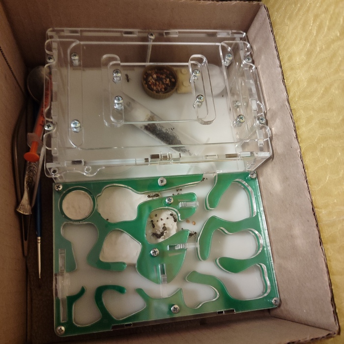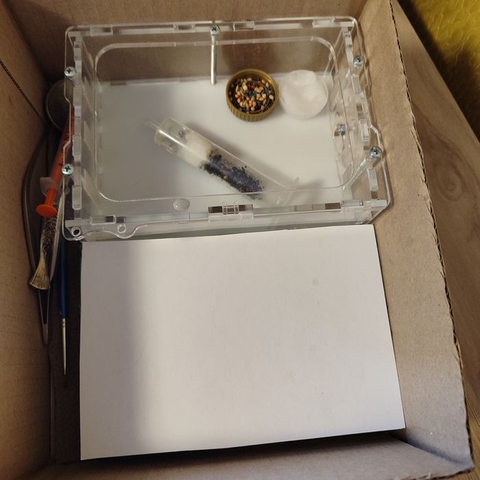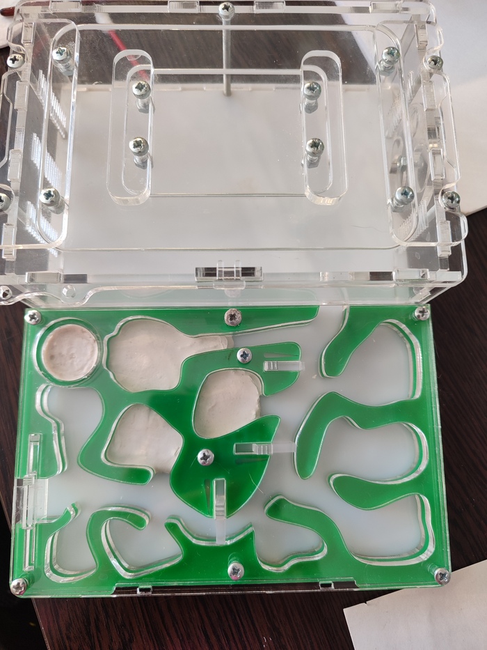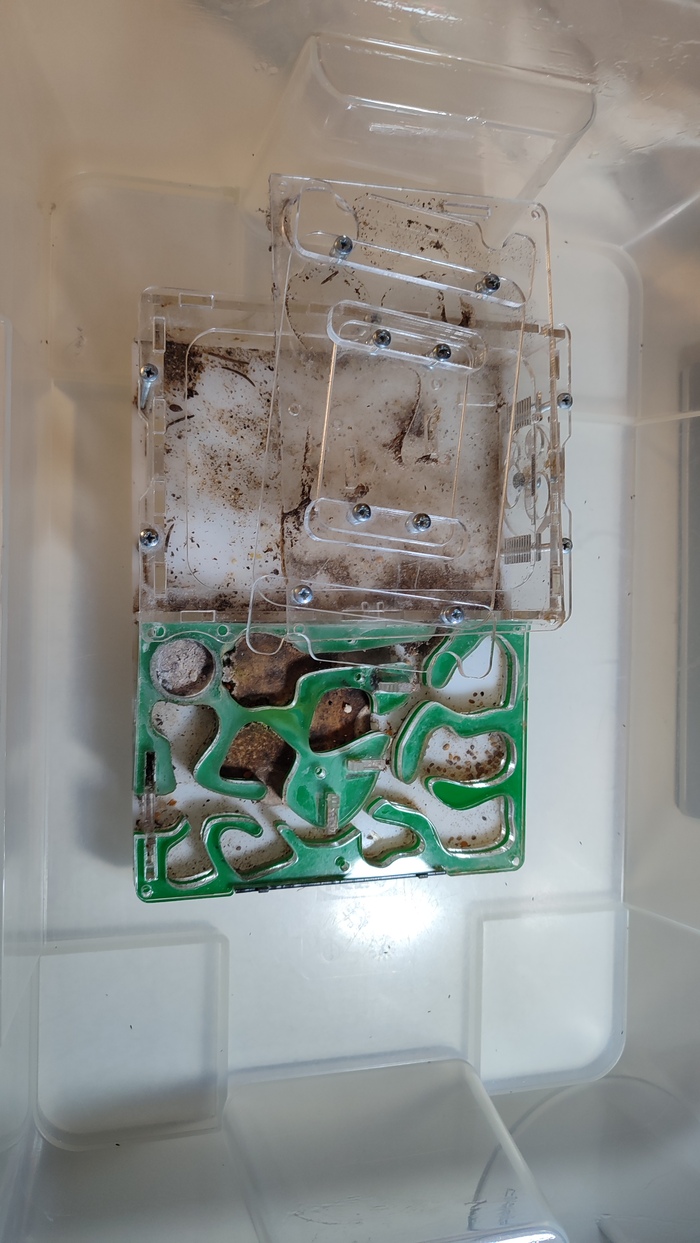 Эта муравьиная ферма была подарена племяннику лет 6 назад. За ними всё это время никто особо не ухажила. Последние пару лет мама пыталась их забрать, но не отдавали. Но вчера мама психанула и поставила перед фактом, что забирает их. В итоге привезла их мне на попытку реабилитации.
