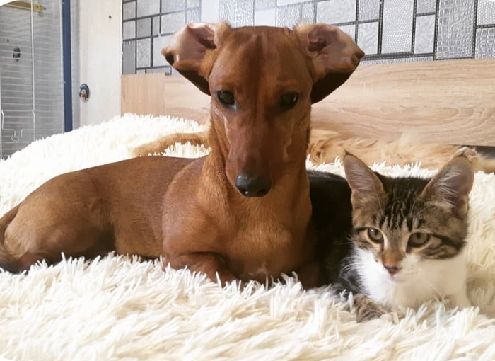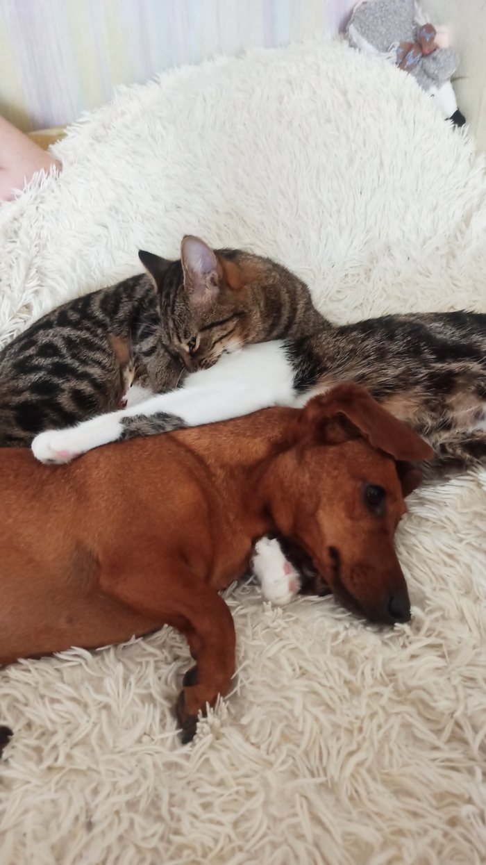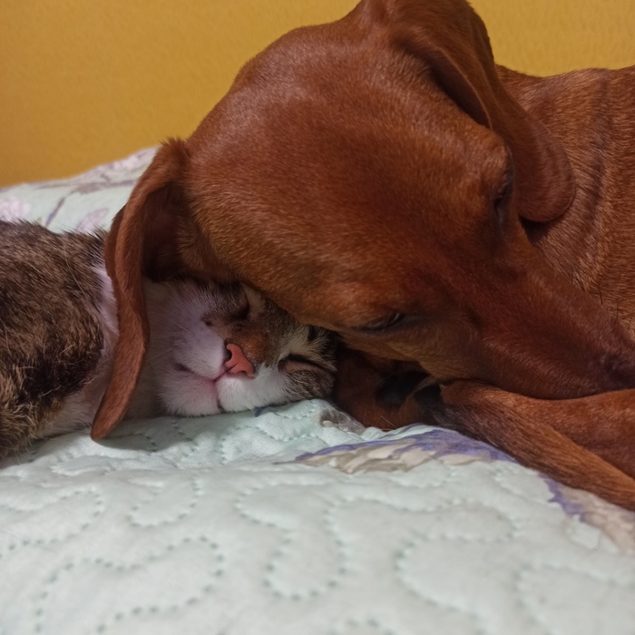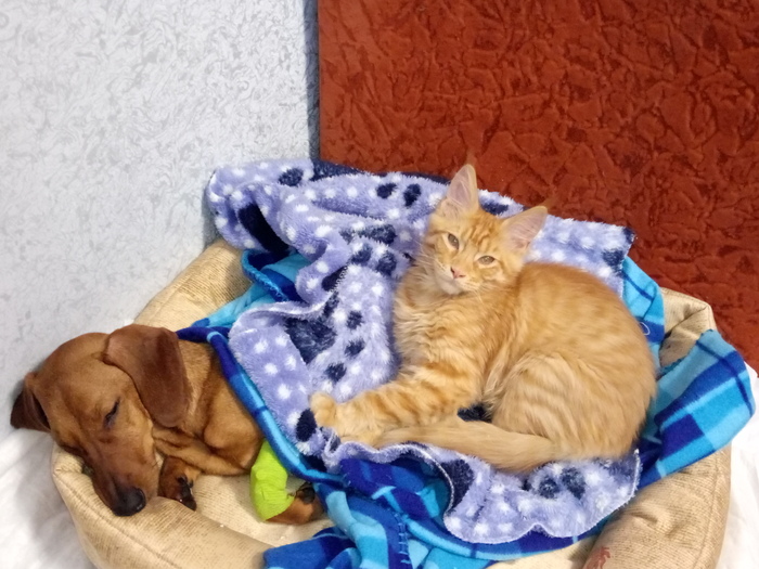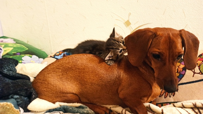 Первая неделя, пока она ничего не ела и даже не пила, а просто лежала пластом в лежаке были самыми тяжёлыми. Но к её спасению подключились всё, даже котёнок. Он ее грел постоянно, ведь она никак не могла согреться, её всё время трясло.