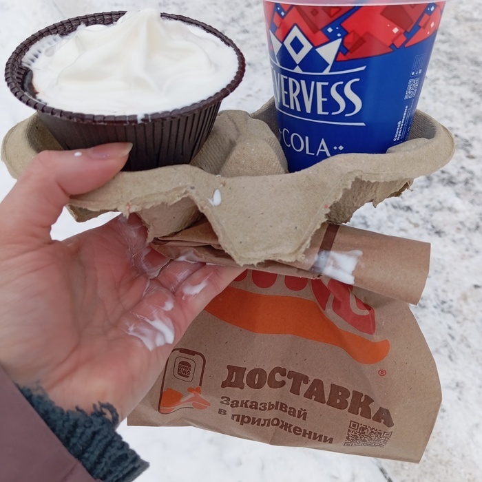 Попросили меня, значит, пройти мимо БК и взять брауни с мороженым. Раньше при покупке с собой их клали в стакан из под колы и крышечкой накрывали. Ну нет проблем, принесу. Заказываю на вынос и получаю: