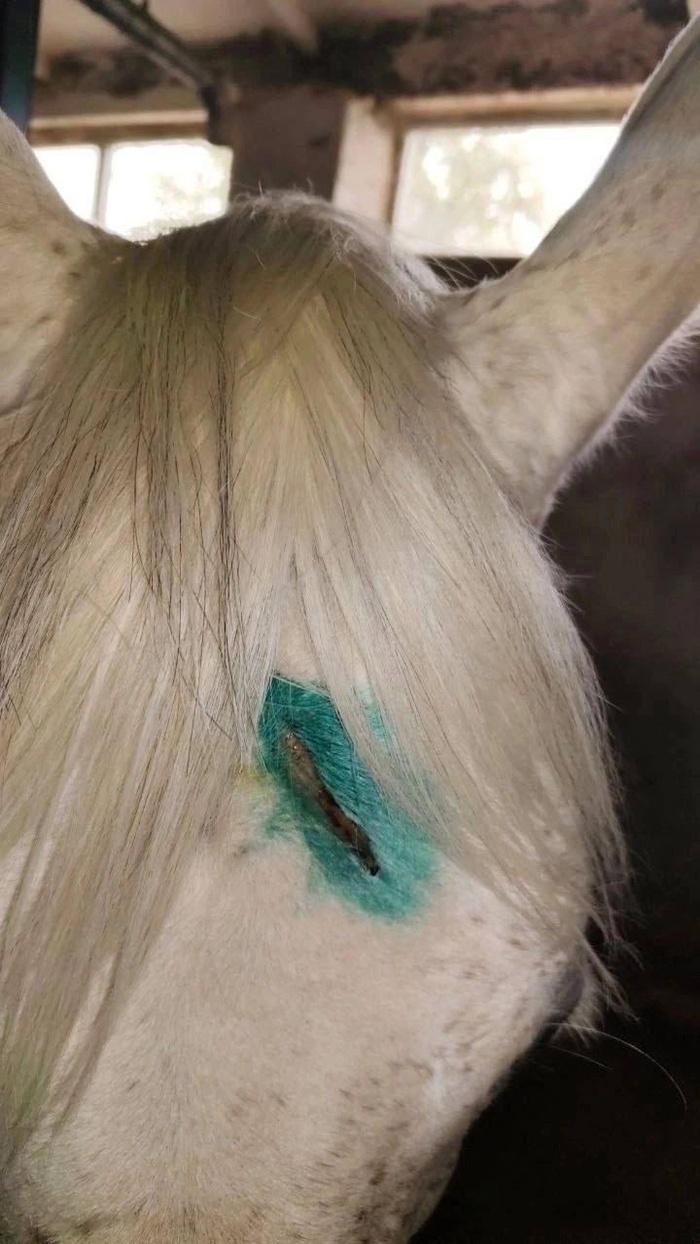 При клиническом осмотре лошади по кличке Иоланта были обнаружены телесные повреждения в виде потёртости в области грудной клетки и ссадины в области головы. Животному оказана ветеринарная помощь. Состояние лошади на данный момент хорошее - Иоланта потребляет необходимый суточный фураж в полном объёме, спокойно контактирует с людьми и уже участвует в тренировках.
