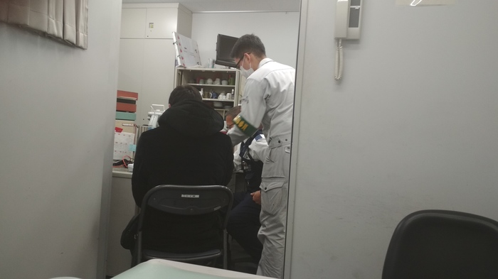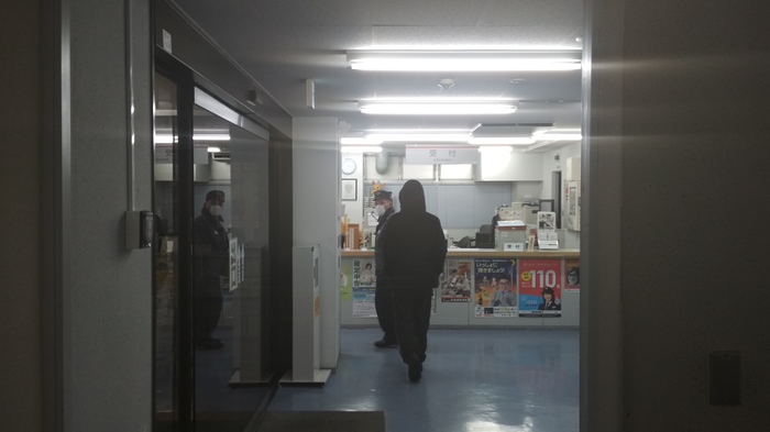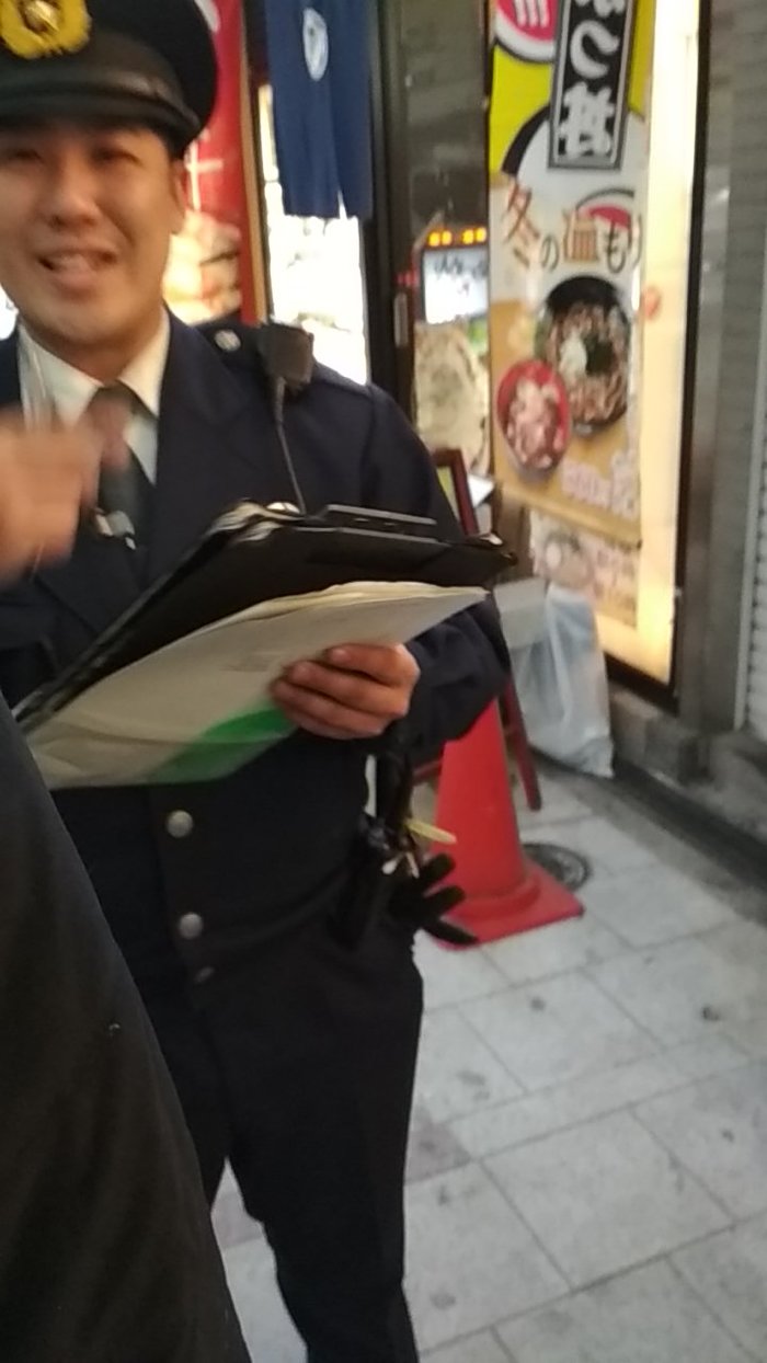 Затем подошел еще один, которого, видимо, так же заинтересовали иностранцы. Он слушал и так же искренне радовался и удивлялся. После он предложил заполнить рапорт для отчета, пока ждем машину. Я согласился. Он спросил некоторые данные, а потом уточнил, есть ли у меня айдишка. Передав ему ID card, он сначала посмотрел на нее, затем на меня. Еще раз на нее. После вернул и задал вопрос. Я не понимал, что он хочет. Его очень расстраивало, что я не понимаю. В итоге я достал спасенный телефон и запустил приложение словаря – Яркси (Реклама готова, жду бесплатную лицензию! Шучу, у меня есть лицензия). Хоть и с ошибками, но полицейский все же смог набрать слово. Оно оказалось 本物 – настоящий, подлинный. Его интересовало настоящая ли у меня айди карта или подделка. Я ответил утвердительно. Он поинтересовался, что я делаю тут – так далеко от своего района. В это время подошел другой полицейский и сказал, что «нектайджин» (игра слов от «галстук» и «человек» ネクタイ人; японец – нихонджин (япония+человек), англичанин – игирисуджин (англия+человек)) уже в участке. Первый полицейский предлагает ознакомиться с моей айдишкой второму. Второй смотрит на адрес и после удивленно спрашивает: «Ты там живешь? Или это просто указано?».