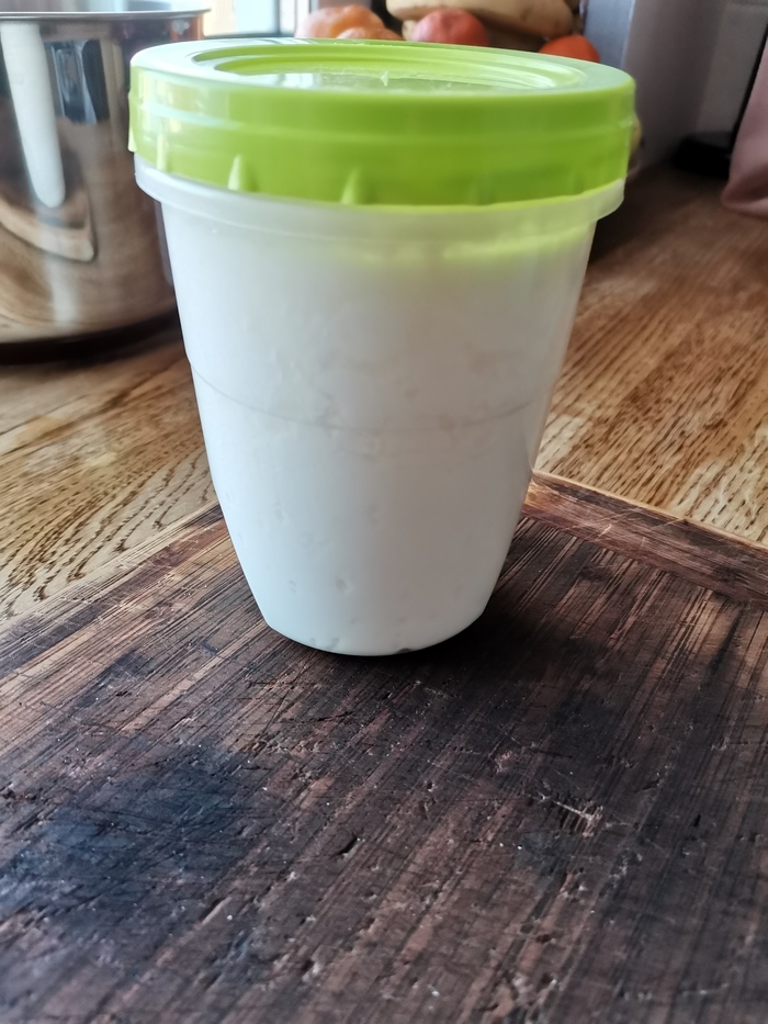 Когла масса станет пузырчато-пышной, наливаю в чашу (миксер все время работает) 250 мл крутого кипятка (струйкой, под венчики). После этого, обычно, масса резко начинает увеличиваться в объёме. Оке, выливаем туда же 400 мл кефира(в этот раз, у меня была простокваша)