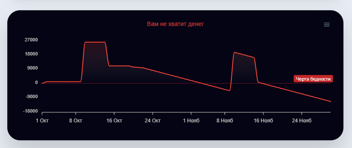 График на странице покажет вам, хватит ли у вас денег до следующей зарплаты при желаемых тратах в день.